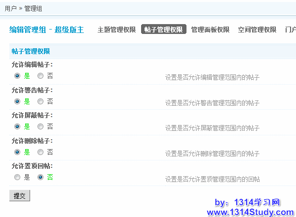 1)允许编辑帖子:设置是否允许编辑管理范围内的帖子。