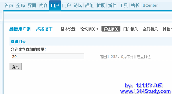 在这里可以设置允许改用户组建立多少个群组,0 为不允许创建。
