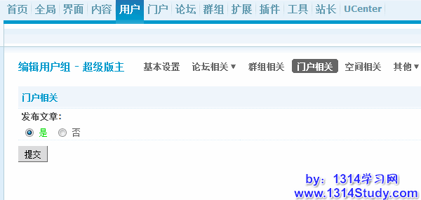 7)允许加入/离开公众用户组:是否允许该用户组用户在站点加入或者离开公共用户组。