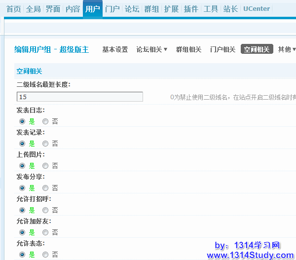 1)二级域名最短长度:个人空间二级域名的最短长度,0 为不允许设置二级域名。
