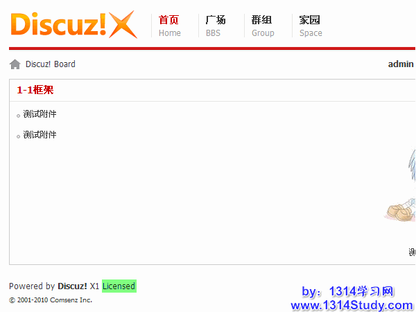 6、显示授权信息链接:选择“是”将在页脚显示商业授权用户链接,链接将指向 Discuz! 官方网站,用户可通过此链接验证其所使用的 Discuz! 是否经过商业授权,设置后的效果如下图所示: