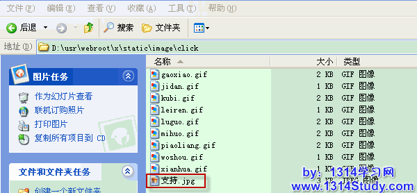 首先将预添加的新动作上传到 static/image/click/ 目录中,如下图所示: