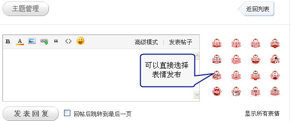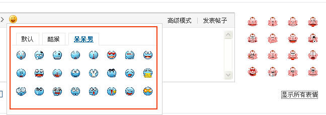 也可以点击显示所有表情,在快速回复中发布非推荐的其它表情。