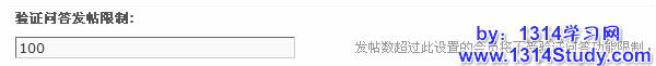 2、验证问答发帖限制:在这里填入数字,设置后发帖数超过这个限制的会员,不受验证问答的限制,0 表示所有会员受验证问答的限制,如下图所示: