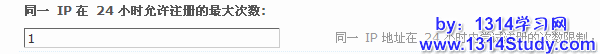 4、同一IP在 24 小时允许注册的最大次数:填入数字,0 表示不限制,设置后同一个 IP 在 24 小时内只能注册设置的次数:如下图所示: