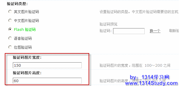 1)当开启Flash验证码时,还可以进一步设置,如下图所示: