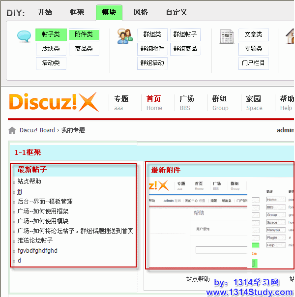 1、首页点击 DIY,拖拽要添加的框架。