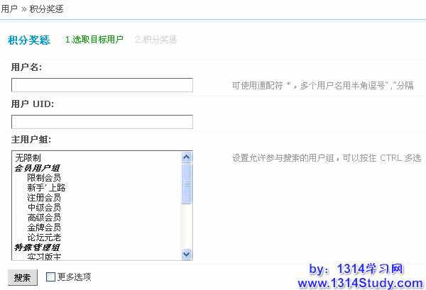 可通过用户名、用户UID、主用户组 搜索 目标用户