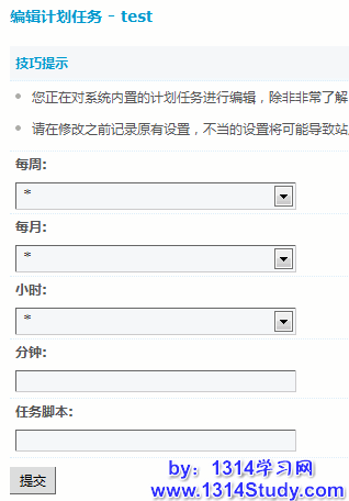 3、填写上已上传到 /source/include/cron/ 中脚本的文件名,提交。