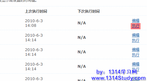 如果站点的计划任务偶尔没有正常执行,也手动执行计划任务即点击相应的计划任务后面的执行,相应的计划任务将立即执行,如图
