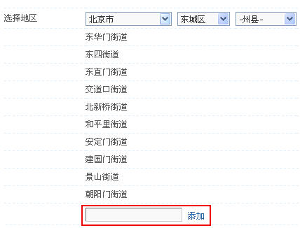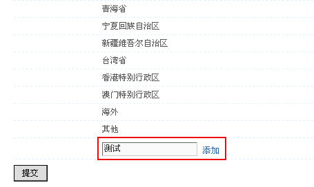 如果要在某一城市下面添加地区,可以选择好这个省份,然后在下面添加。