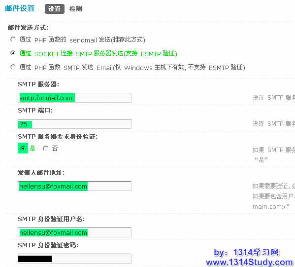 这种方式适用于 win 或者 linux 类服务器使用(适合于虚拟主机或者独立主机使用),并且支持 ESMTP 验证。需要站长拥有一个 SMTP 服务器,例如 Foxmail 的 SMTP 服务器。