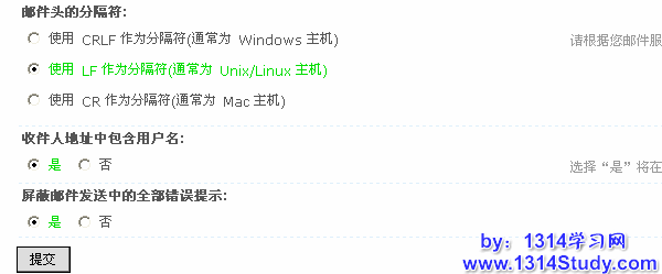 说明:这里根据您使用的邮件服务器系统选择邮件头的分隔符。