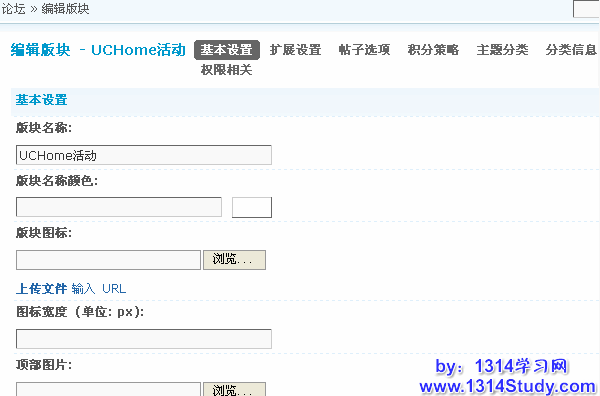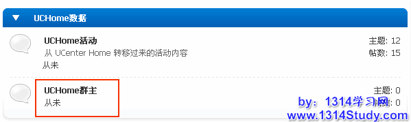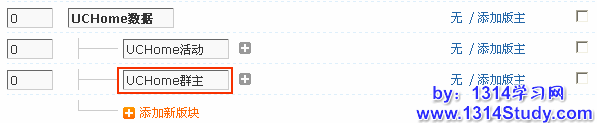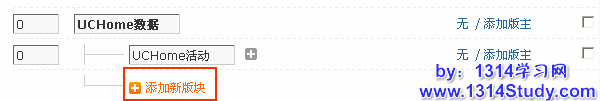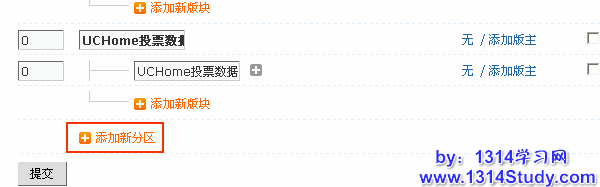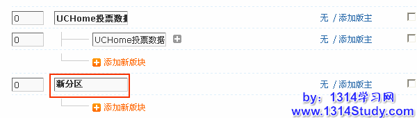 点击“UCHome活动”版块下方的“添加新版块”,为该分区添加版块: