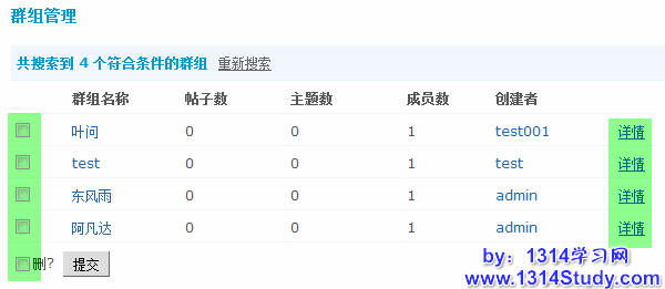 对于搜索到的群组,可以对其进行批量删除,也可以对某个群组的详情进行管理。