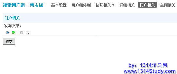 设置是否允许用户组用户在门户发布文章。