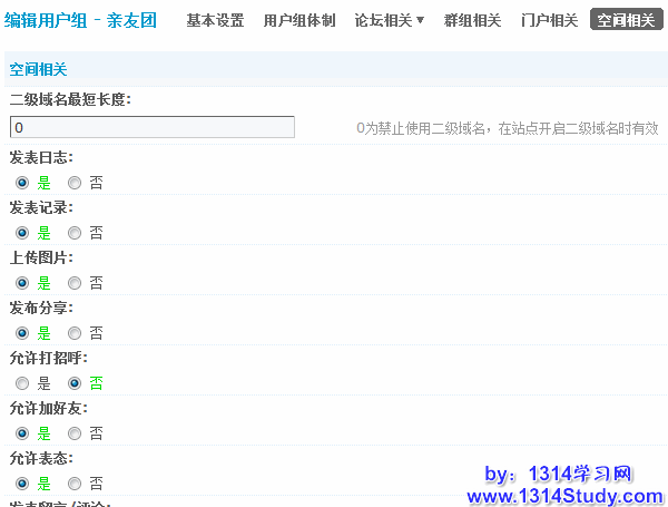 2)发表日志:是否允许在个人空间中发布日志。