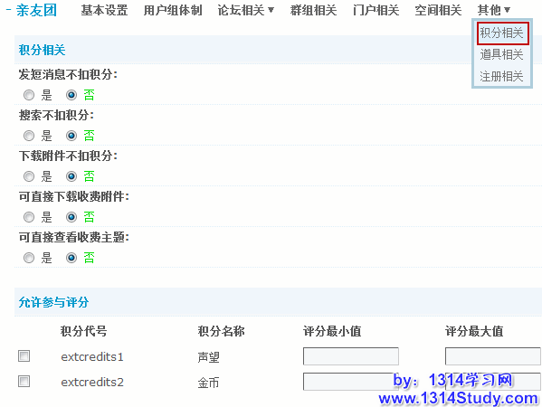 1)发短消息不扣积分:设置发短消息是否按照积分规则扣积分。