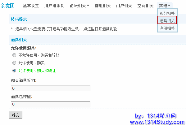 1)允许使用道具:是否允许使用道具,包括购买、使用、转让的权限。