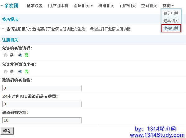 2)允许发送邀请注册:是否允许通过论坛邮件系统发送邀请码。