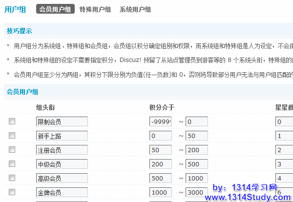 用户被加入特殊用户组后,将不受会员用户组级别的限制。