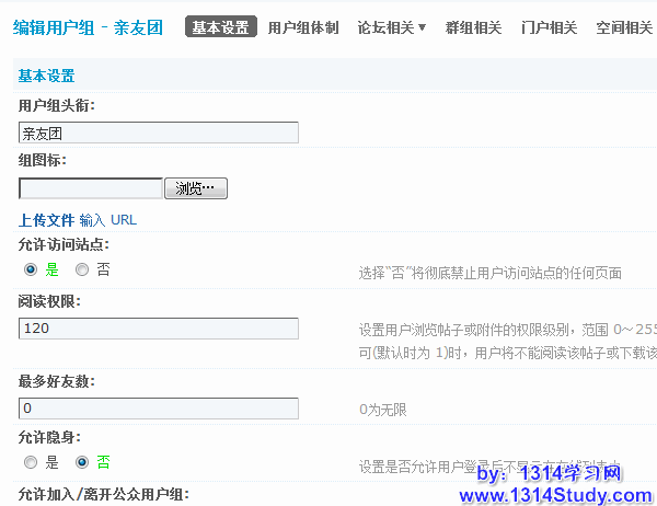 5)最多好有数:该用户组的用户能够拥有的最多好友数量。