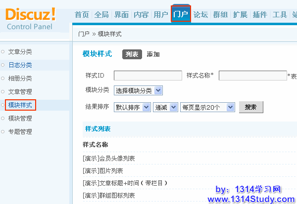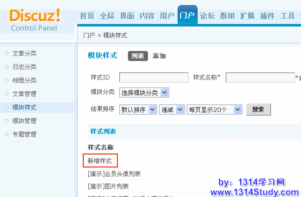 3)添加成功后可以在后台 => 门户 => 模块样式 => 列表中,看到新增的样式,如下图所示: