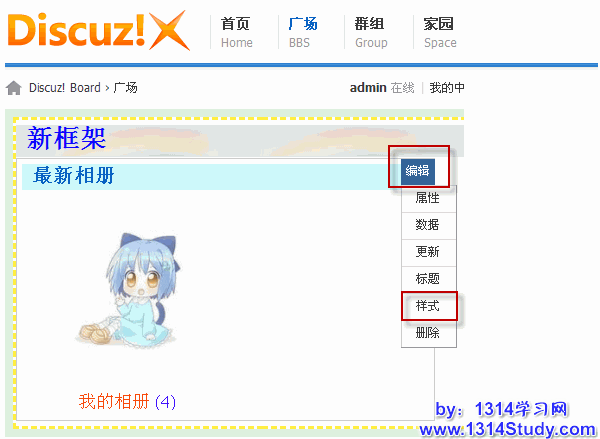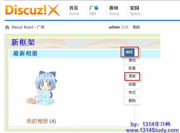 3)图片:输入显示在模块名称前面的模块图标地址,如:./static/image/common/star_level1.gif