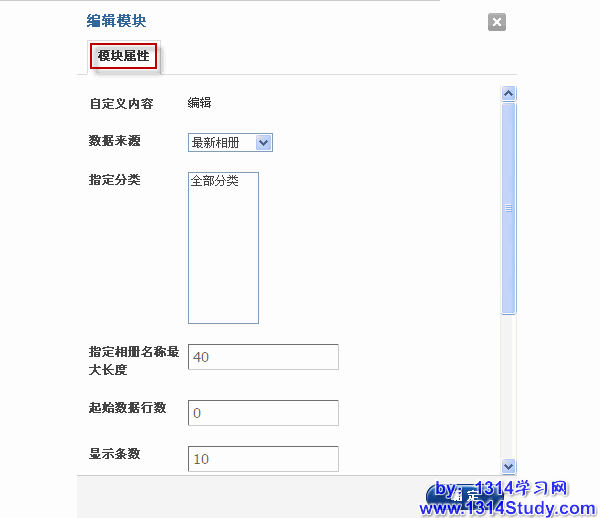 1)模块标题:输入要显示的模块标题,如:最新相册。