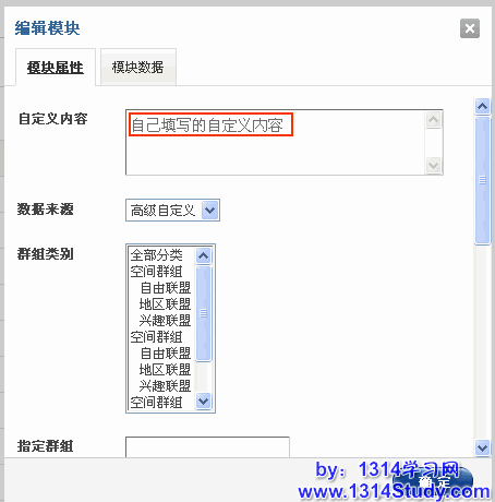 数据来源:根据所选择的模块不同,数据来源也是不相同的,比如活跃群组,数据来源分为:最新群组、热门群组、指定群组和高级自定义。