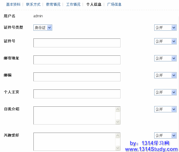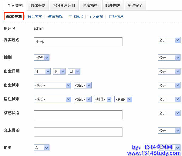 以上的信息都可以设置隐私权限为公开、仅好友可见或者保密。同时您也可以在后台,用户栏目中添加要显示的用户信息,也可以信息用户信息是否为选填或者必填项。