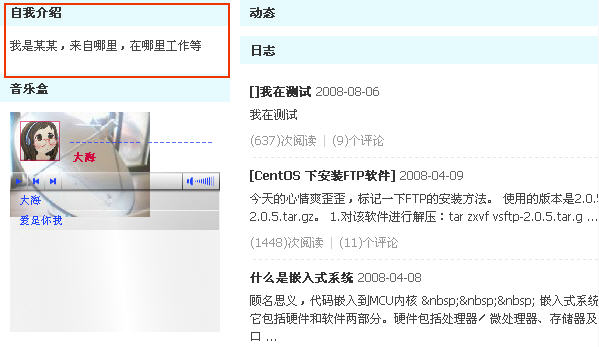 其中自定义内容支持 BBCODE IMG 代码,最大 1000 字。比如添加自我介绍,效果如图: