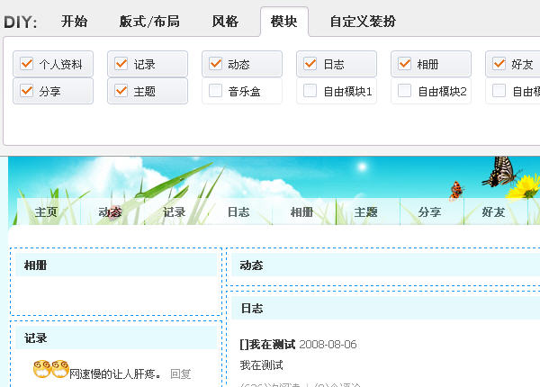 找到位置后就可以尽情的 DIY 自己的空间首页了。