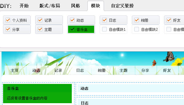 模块名称:可以编辑修改模块的名称,比如可以把音乐盒改为其它的名字。