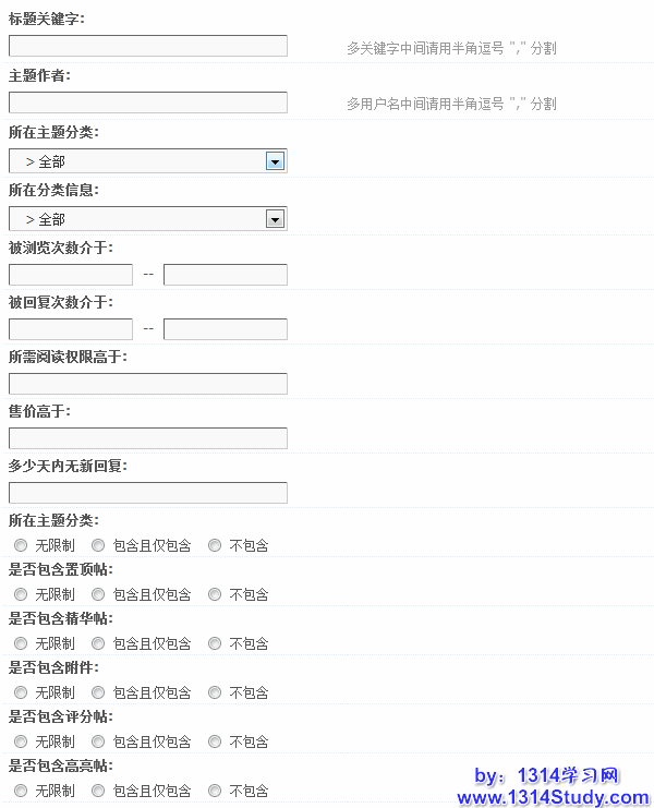 “所在分表”会列出帖子表存在的所有分表,指定其中一个主题分表,在其中进行搜索。