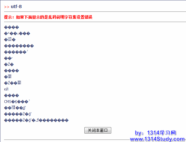 选择数据库字符集为 utf8 ,点击“检查此设置”,效果如下图 ,显然这个显示是乱码。