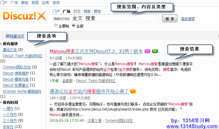 以官方论坛为例,Manyou 搜索的界面如下图所示: