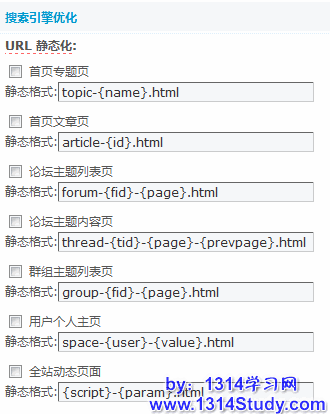 从 Discuz!X 开始,可以根据用户需求来设置静态格式,可以将 首页专题页、首页文章页、论坛主题列表页、论坛主题内容页、群组主题列表页、用户个人主页 以及 全站动态页面 根据需求选择开启并且设置个性化的静态显示格式。形成类似 http://www.discuz.net/forum-33-1.html 和http://www.discuz.net/thread-1670193-1-1.html 等形式的超级链接,从而使论坛内容更容易被搜索引擎挖掘,提高被收录的机率。