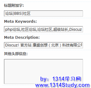 网页标题通常是搜索引擎关注的重点,本附加字设置将出现在标题中论坛名称的后面,如果有多个关键字,建议用 "|"、","(不含引号) 等符号分隔。设置之后该文字将显示在浏览器网站标题后面。如下图中 “Discuz!论坛官方”后面的文字。