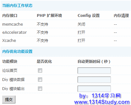 从 Discuz!X 开始,系统提供的内置的内存优化方式。支持的内存优化接口有 Memcache, eAccelerator, Xcache 三种,优化系统将会依据当前服务器环境依次选用接口。
