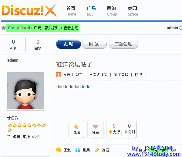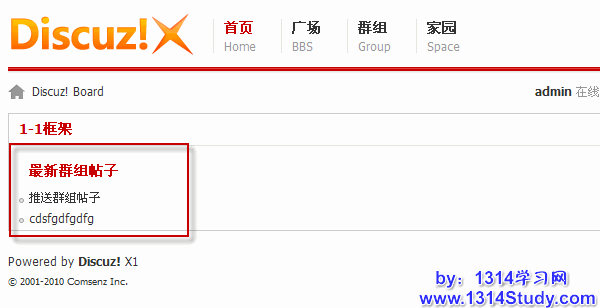 2、当再访问首页时,会看到群组帖子已经成功的展示在首页,如下图所示: