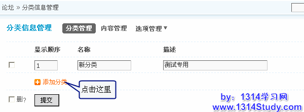 填写该分类的显示顺序、名称、描述,然后提交即可。