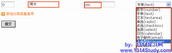 添加分类信息选项:选择交友类,其中包括星座、身高、体重、婚姻状况、爱好、收入范围,可以选择这里的任意项或者全部选择为分类信息的选项。选择好以后可以编辑这些选项。如下图所示: